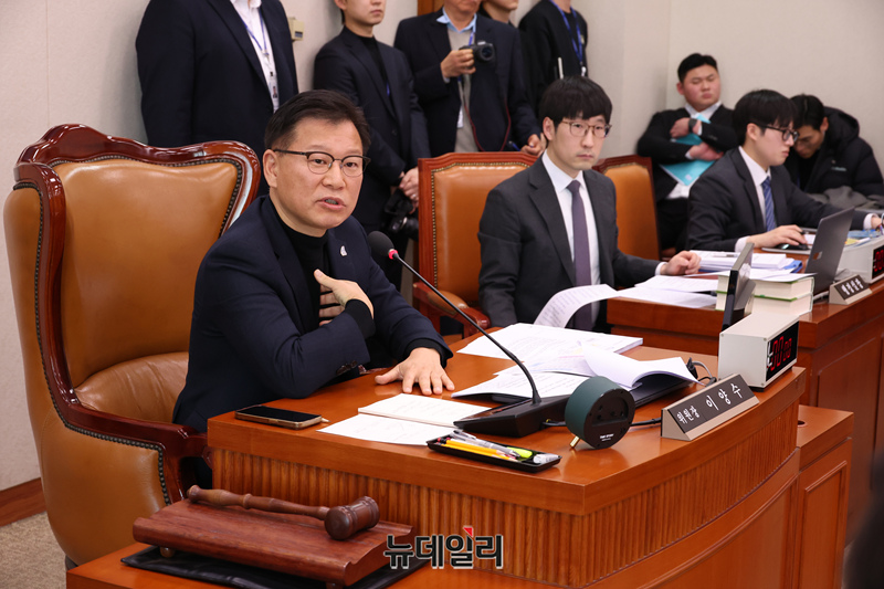 이양수 위원장이 27일 국회 국토교통위원회에서 열린 12.29 여객기 참사 진상규명을 위한 국정조사특별위원회 전체회의에서 의사진행을 하고 있다.