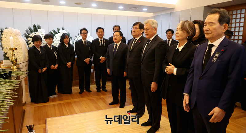 문재인 전 대통령과 김정숙 여사가 27일 오후 서울 종로구 서울대학교병원 장례식장에 마련된 고 이해찬 민주평화통일자문회의 수석부의장의 빈소를 찾아 조문하고 있다. (2026.1.27 사진공동취재단)