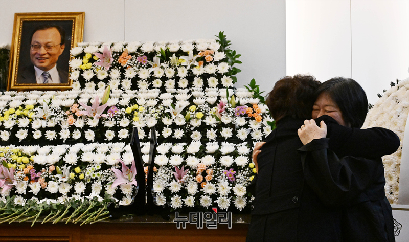권양숙 여사가 27일 서울 종로구 서울대학교병원 장례식장에 마련된 이해찬 민주평화통일자문회의 수석부의장의 빈소를 조문하고 있다. 2026.1.27 사진공동취재단