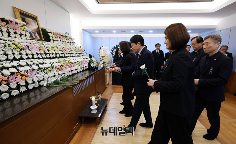 김재연 진보당 상임대표와 윤종오 원내대표가 27일 서울 종로구 서울대학교병원 장례식장에 마련된 이해찬 민주평화통일자문회의 수석부의장의 빈소를 찾아 조문하고 있다. 2026.1.27 사진공동취재단
