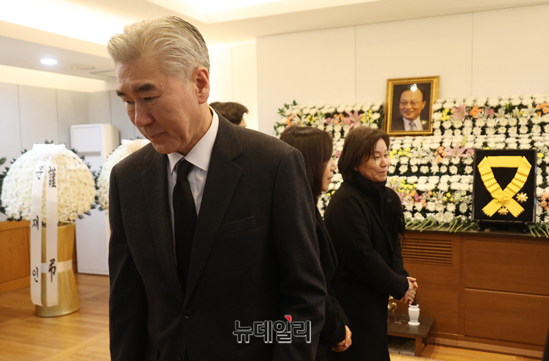 성 김 현대자동차 사장이 27일 오후 서울 종로구 서울대학교병원 장례식장에 마련된 고 이해찬 민주평화통일자문회의 수석부의장의 빈소를 찾아 조문한 뒤 자리를 나서고 있다. 2026.1.27 사진공동취재단