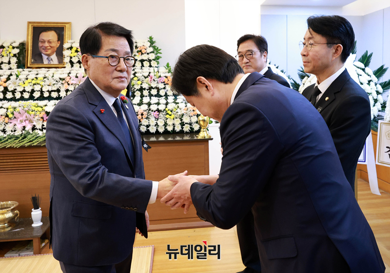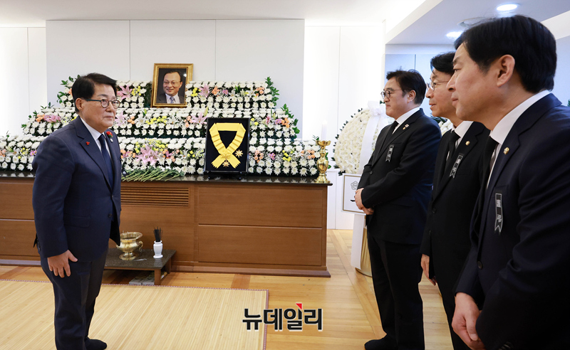 박지원 더불어민주당 의원이 27일 서울 종로구 서울대학교병원 장례식장에 마련된 고 이해찬 전 국무총리의 빈소를 조문하고 있다. 2026.1.27 사진공동취재단