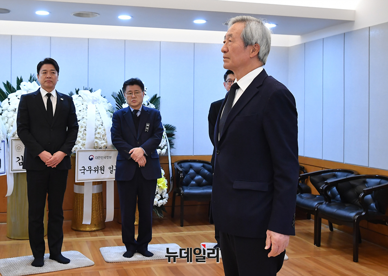정몽준 아산재단 이사장이 28일 오전 서울 종로구 서울대학교병원 장례식장에 마련된 故 이해찬 전 국무총리의 빈소에서 조문을 하고 있다. 2026.01.28. 사진공동취재단