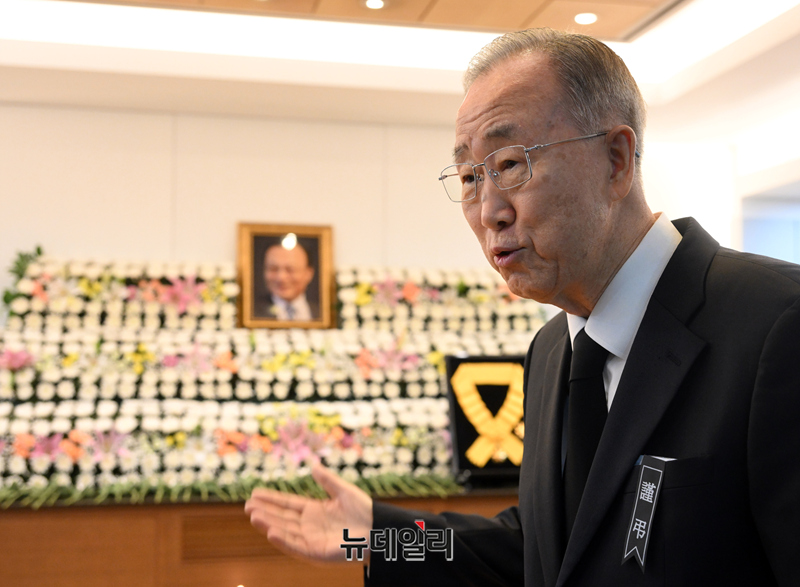 반기문 전 유엔사무총장이 28일 오전 서울 종로구 서울대학교병원 장례식장에 마련된 故 이해찬 전 국무총리의 빈소에서 조문을 하고 있다. 2026.01.28. 사진공동취재단