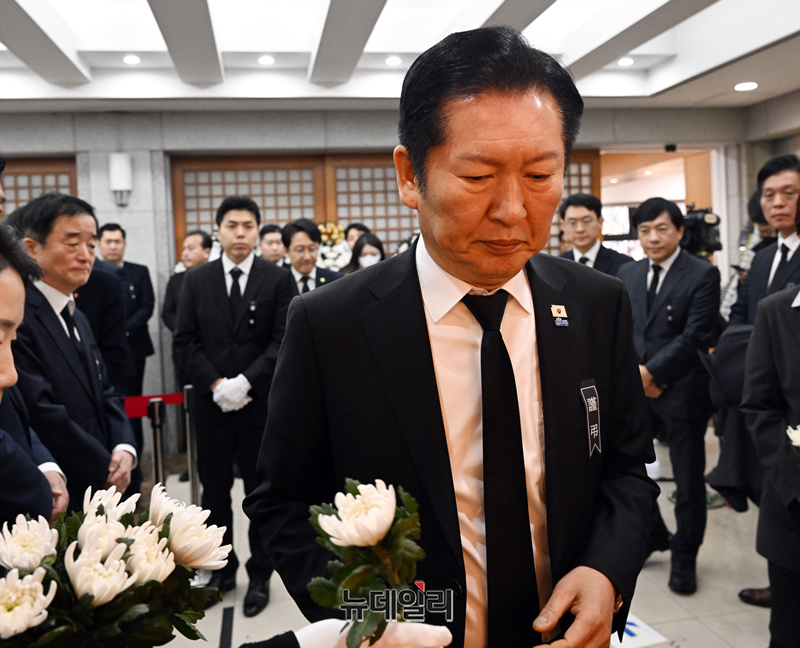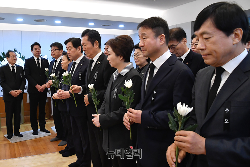더불어민주당 정청래 대표와 한병도 원내대표, 최고위원들이 28일 오전 서울 종로구 서울대학교병원 장례식장에 마련된 故 이해찬 전 국무총리의 빈소에서 조문을 하고 있다. 2026.01.28. 사진공동취재단