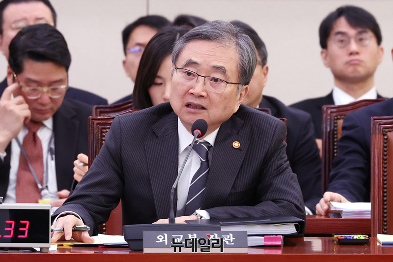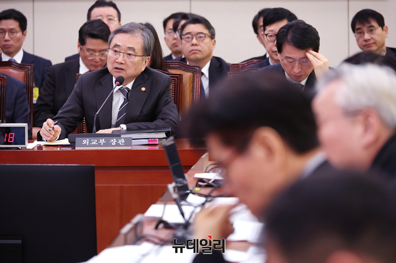 조현 외교부 장관이 28일 국회 외교통일위원회에서 열린 현안질의에 참석해 의원들의 질문에 답하고 있다.