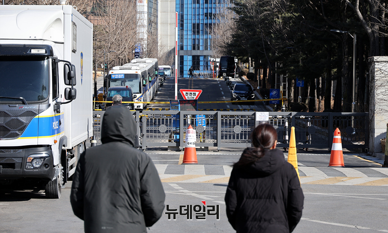 [포토] 김건희 여사 1심 선고공판 앞두고 폐쇄된 법원 출입구
