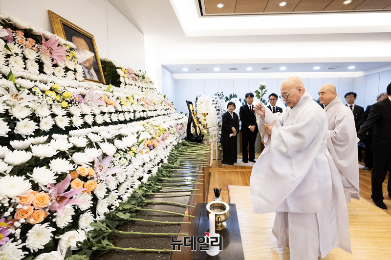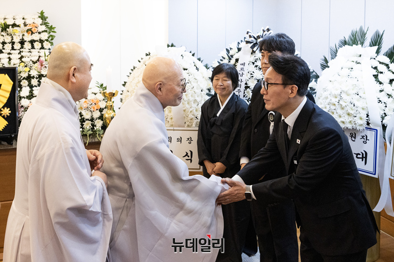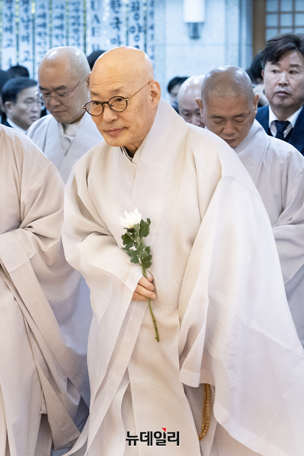 대한불교조계종 총무원장 진우스님이 28일 오후 서울 종로구 서울대학교병원 장례식장에 마련된 故 이해찬 전 국무총리의 빈소에서 조문을 하고 있다. (사진=공동취재단)