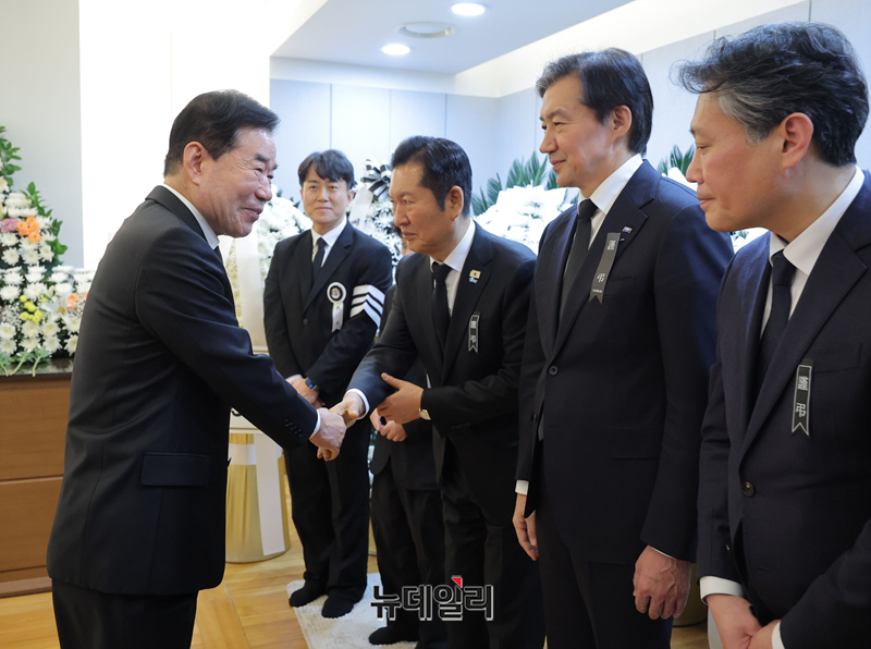 김진표 전 국회의장이 28일 서울 종로구 서울대학교병원 장례식장에 마련된 고 이해찬 전 국무총리의 빈소에서 조문을 하고 있다. 2026.1.28 사진공동취재단