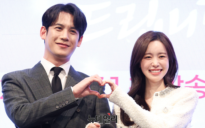 배우 박기웅과 진세연이 28일 오후 서울 구로구 더세인트에서 열린 KBS 2TV 새 주말드라마 '사랑을 처방해 드립니다' 제작발표회에서 포즈를 취하고 있다.