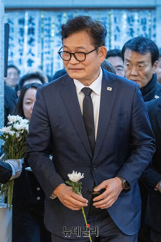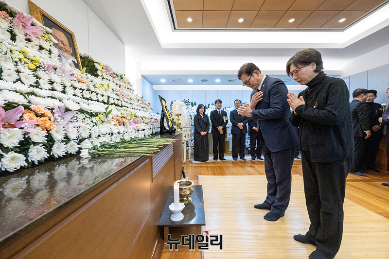 송영길 소나무당 대표가 28일 오후 서울 종로구 서울대학교병원 장례식장에 마련된 故 이해찬 전 국무총리의 빈소에서 조문을 하고 있다. (사진=공동취재단)