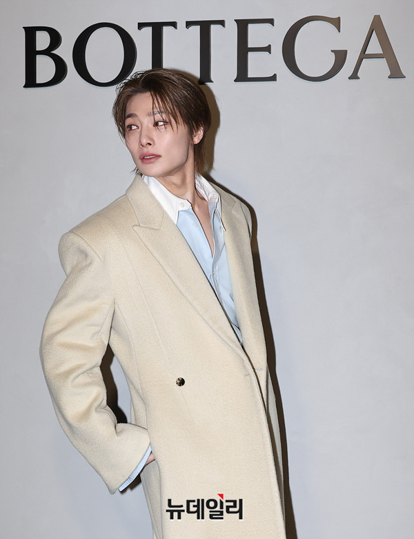 스트레이키즈 아이엔이 28일 오후 서울 성동구 에스팩토리에서 열린 보테가 베네타 2026 여름 프라이빗 뷰 포토콜에서 포즈를 취하고 있다. 2026 여름 컬렉션은 브랜드의 새로운 CD 루이스 트로터 데뷔작이다.