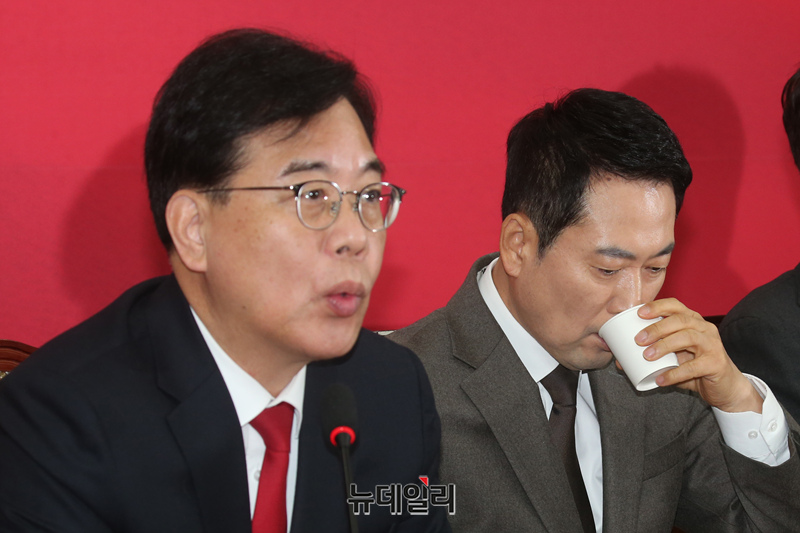 [포토] 목 타는 장동혁 국민의힘 대표
