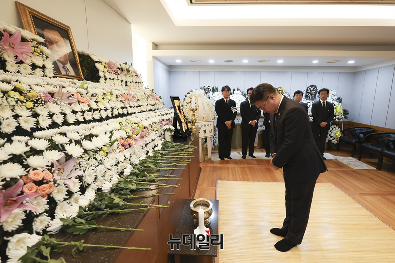 윤호중 행정안전부 장관이 29일 서울 종로구 서울대학교병원 장례식장에 마련된 고 이해찬 전 국무총리의 빈소에서 조문을 하고 있다. 2026. 01. 29 사진공동취재단
