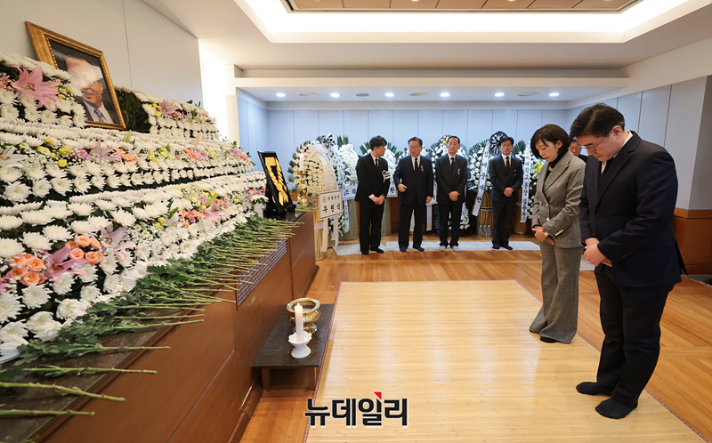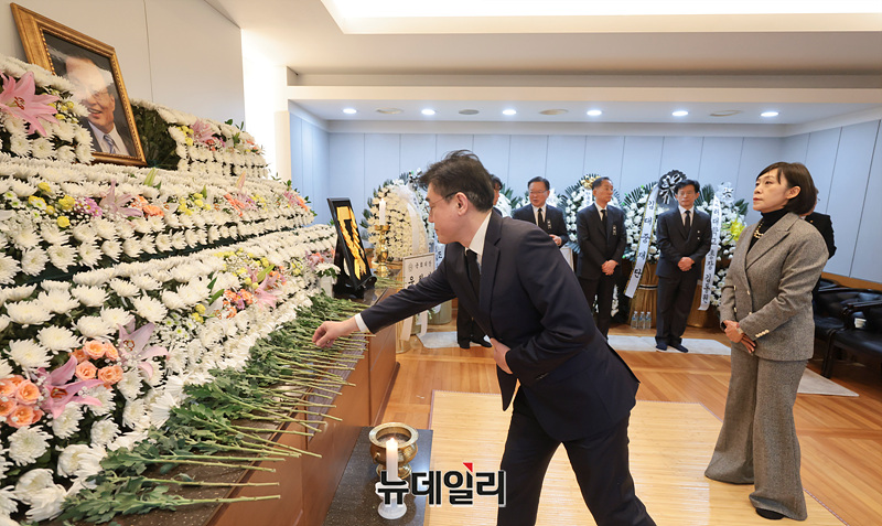 김재준 전 청와대 춘추관장이 29일 오후 서울 종로구 서울대학교병원 장례식장에 마련된 故 이해찬 전 국무총리의 빈소에서 조문을 하고 있다. (사진=공동취재단)