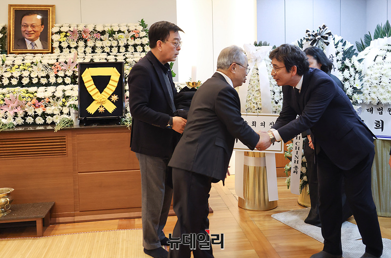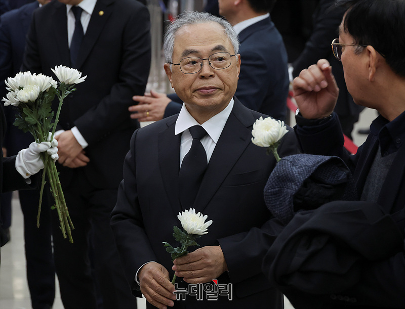 오거돈 전 부산시장이 29일 오후 서울 종로구 서울대학교병원 장례식장에 마련된 故 이해찬 전 국무총리의 빈소에서 조문을 하고 있다. (사진=공동취재단)