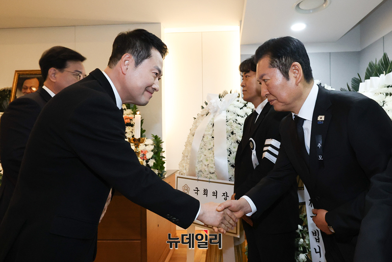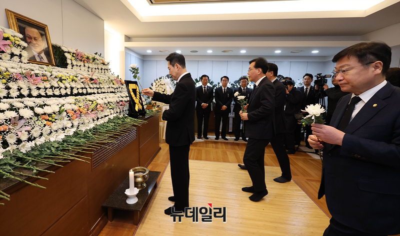 국민의힘 장동혁 대표(오른쪽)와 송언석 원내대표, 정점식 정책위의장이 30일 오전 서울 종로구 서울대학교병원 장례식장에 마련된 故 이해찬 전 국무총리의 빈소를 찾아 조문하고 있다. 2026.01.30. 사진공동취재단