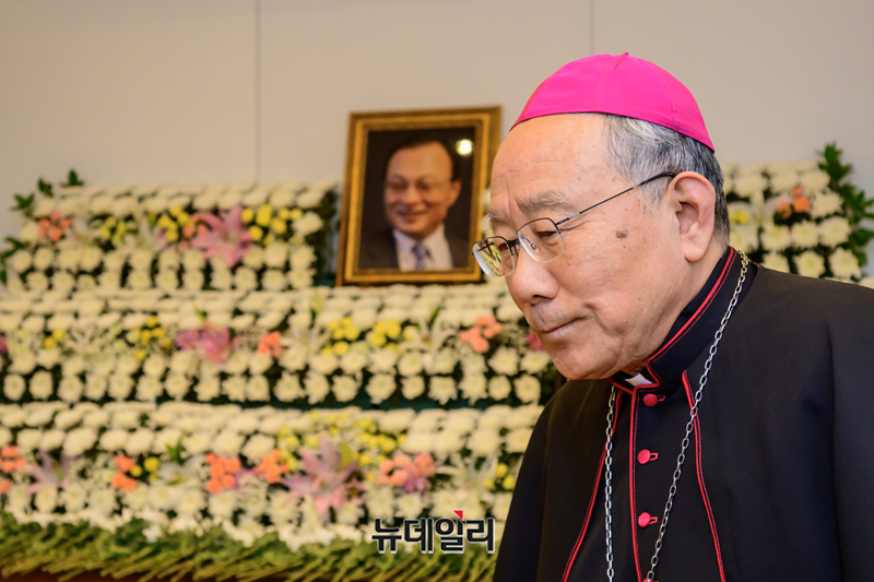 30일 오후 서울 종로구 서울대학교병원 장례식장에 마련된 고 이해찬 전 국무총리의 빈소에서 서울대교구 총대리 구요비 주교가 조문을 하고 있다. 2026.01.30 사진공동취재단