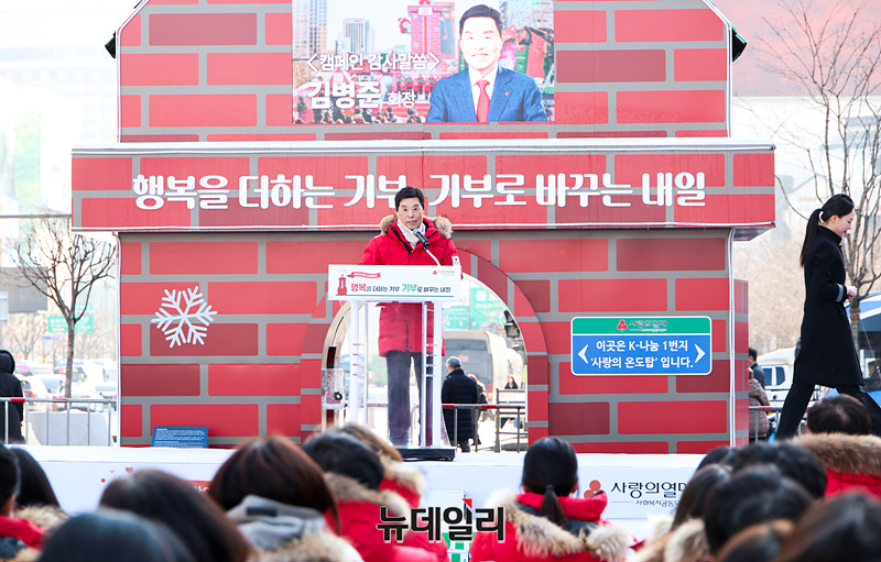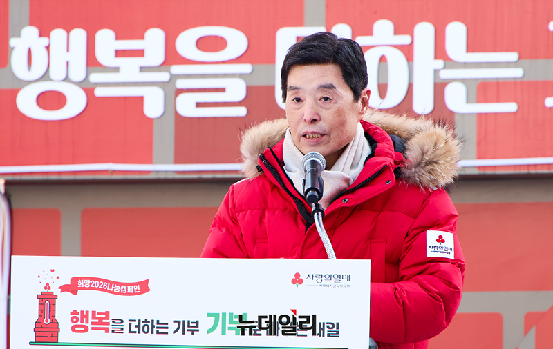 김병준 사랑의열매 사회복지공동모금회 회장이 2일 오후 서울 중구 광화문 광장에서 열린 '희망 2026 나눔 캠페인 폐막식'에서 감사인사를 하고 있다.