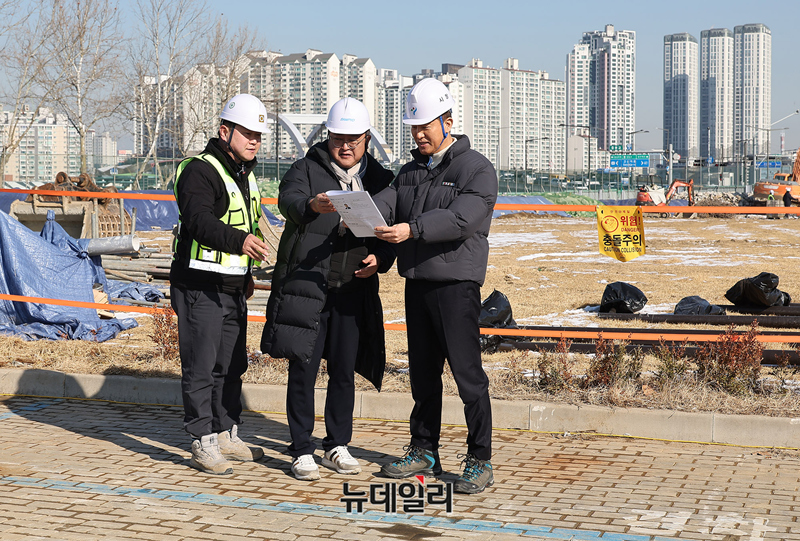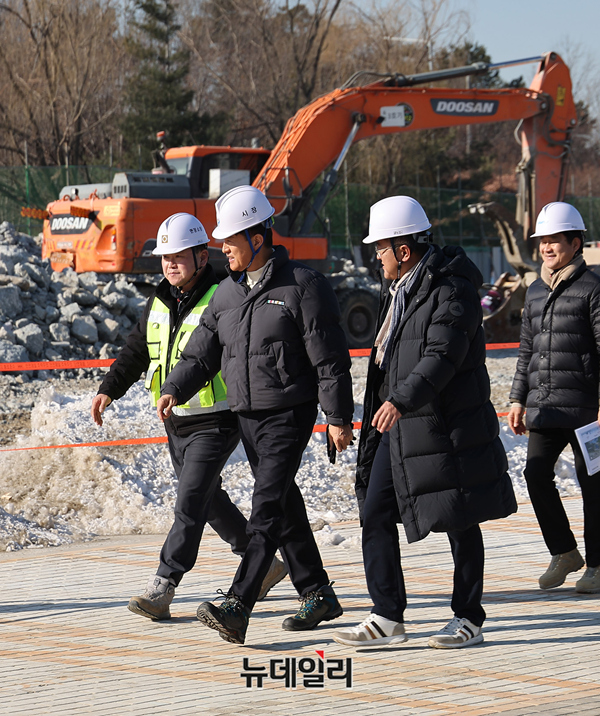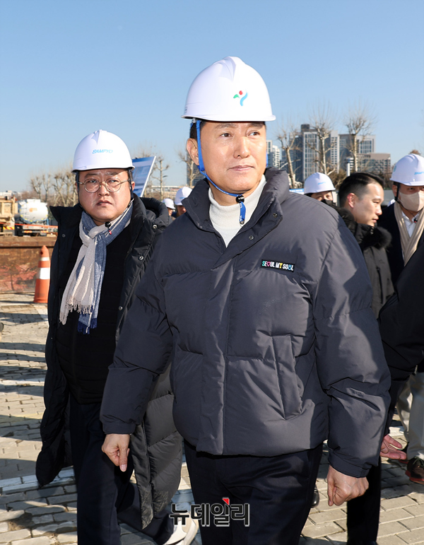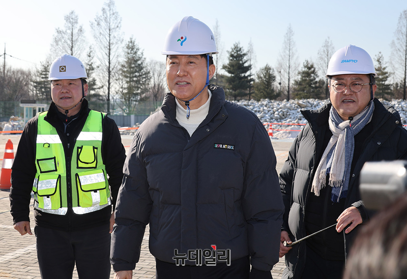 [포토] 성수동 삼표레미콘 부지 공사현장 둘러보는 오세훈 서울시장