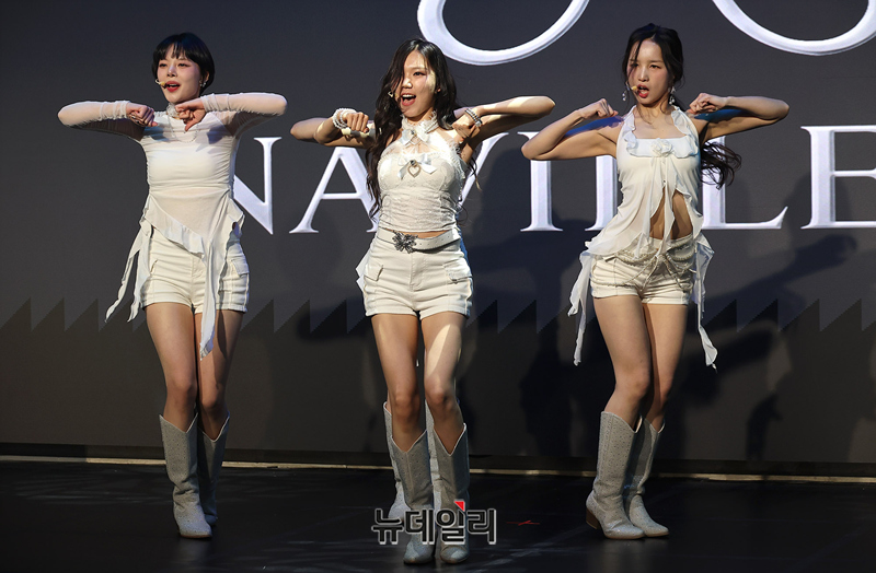 신인 4인조 걸그룹 나빌레라(NAVILLERA, 애니, 릴라, 멜로디, 사야)가 3일 오후 서울 마포구 아스트라라이브에서 열린 데뷔 싱글 'NO LIMIT(노리미트)' 쇼케이스에서 수록곡 무대를 선보이고 있다.데뷔 싱글 No Limit는 정해진 끝이 없는 우리의 비행이라는 의미를 담고, 어반 댄스 특유의 그루브 리듬과 나빌레라만의 독보적인 퍼포먼스가 특징이다.'스스로 설정한 한계를 뛰어넘어 더 높은 곳으로 나아가겠다는 의지'를 담은 이번 앨범은 멈추지 않는 성장을 시각화한 듯한 역동적인 사운드로 표현한다.나빌레라는 팬쇼케이스를 통해 다양한 활동을 계획하고 있다.