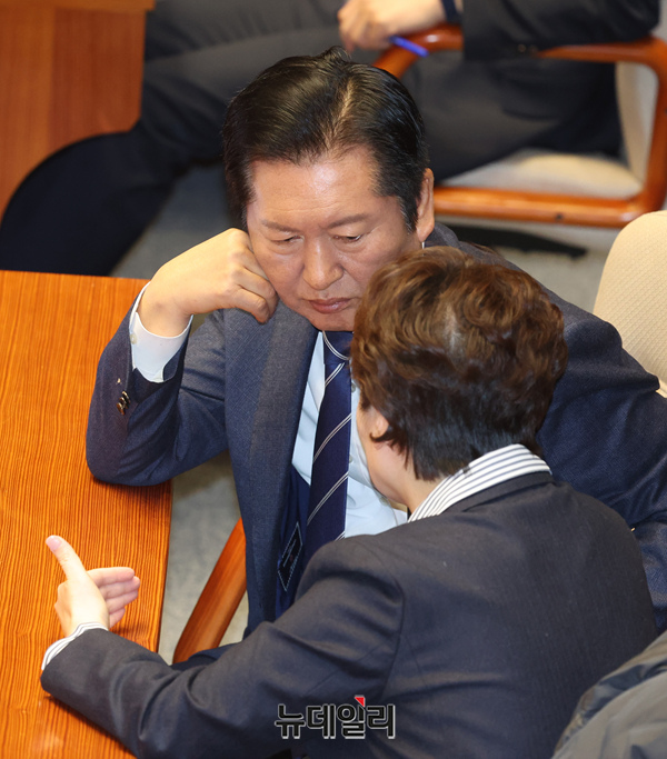 정청래 더불어민주당 대표와 이언주 최고위원이 4일 국에서 열린 본회의에서 대화하고 있다.