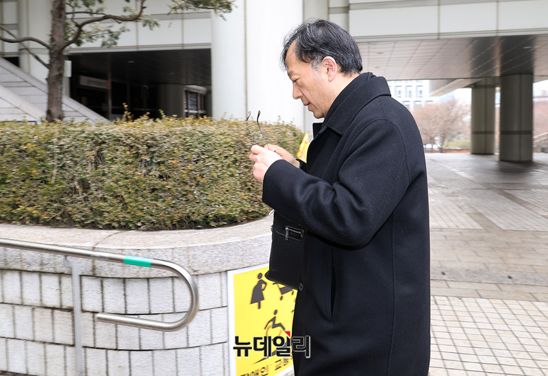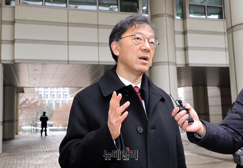 공직선거법상 허위사실공표죄 등으로 재판에 넘겨진 양승오 박사 법률대리인 차기환 변호사가 4일 오후 서울 서초구 서울고등법원에서 열린 항소심 선고 공판에 입장하며 발언하고 있다.