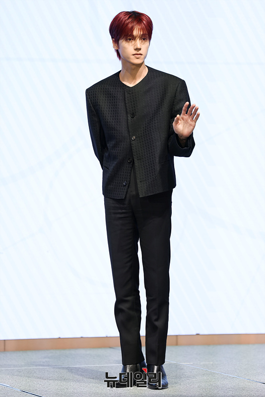 그룹 에이티즈(ATEEZ) 우영이 5일 오후 서울 여의도 페어몬트 앰배서더 서울에서 열린 미니 13집 앨범 'GOLDEN HOUR : Part.4' 기자간담회에서 포즈를 취하고 있다.