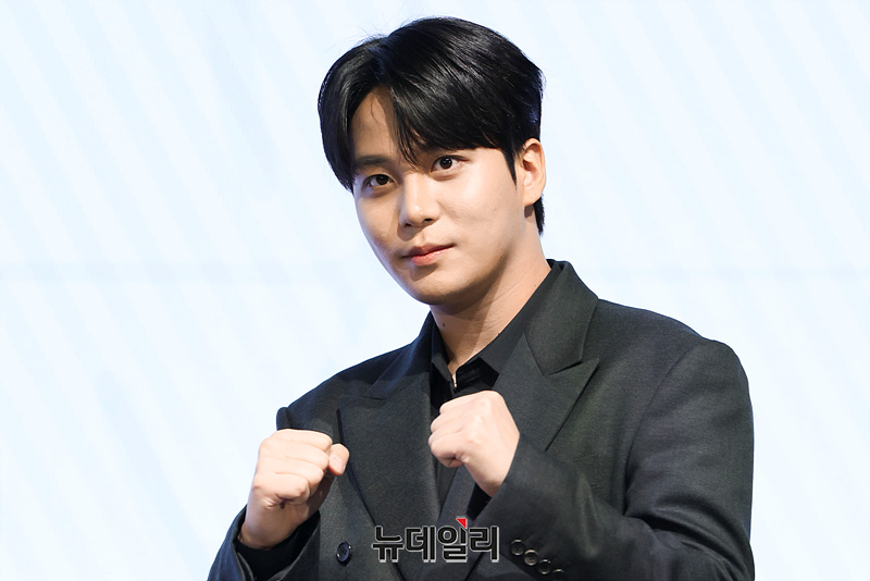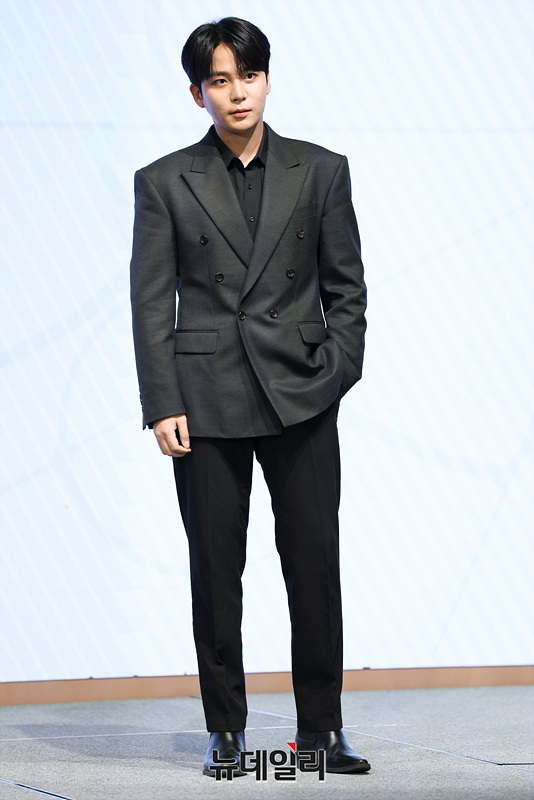 그룹 에이티즈(ATEEZ) 종호가 5일 오후 서울 여의도 페어몬트 앰배서더 서울에서 열린 미니 13집 앨범 'GOLDEN HOUR : Part.4' 기자간담회에서 포즈를 취하고 있다.