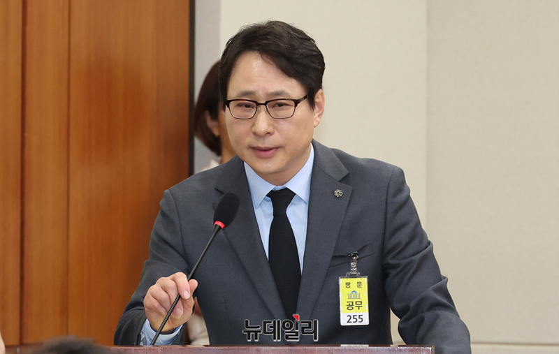 이재원 빗썸 대표이사가 11일 국회에서 열린 정무위원회의 빗썸 관련 긴급 현안질의에서 의원 질의에 답하고 있다.