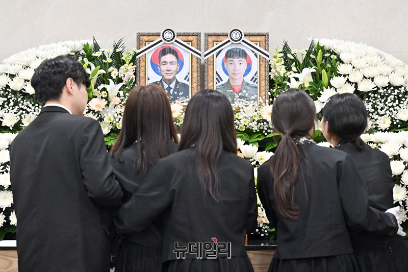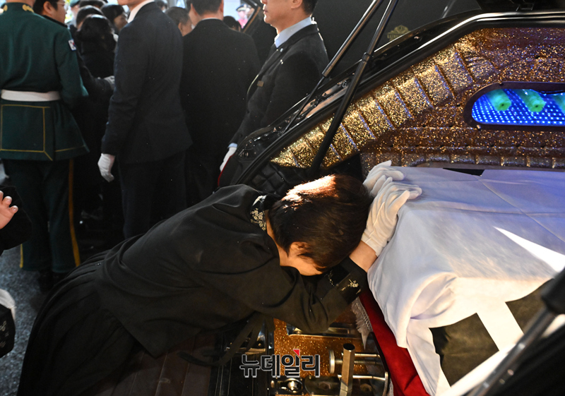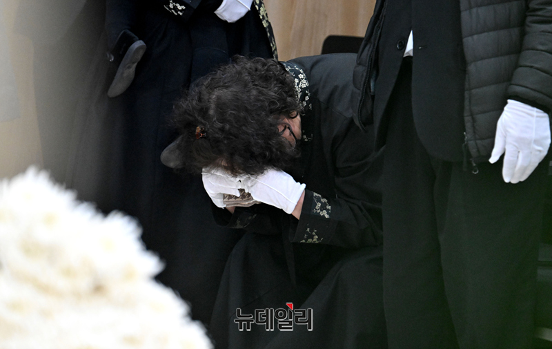 12일 오전 경기도 성남시 국군수도병원 영결식장에서 열린 육군 항공기 사고 순직자에 대한 영결식에서 장희성 준위의 유가족이 오열하고 있다. 2026.02.12. 사진공동취재단