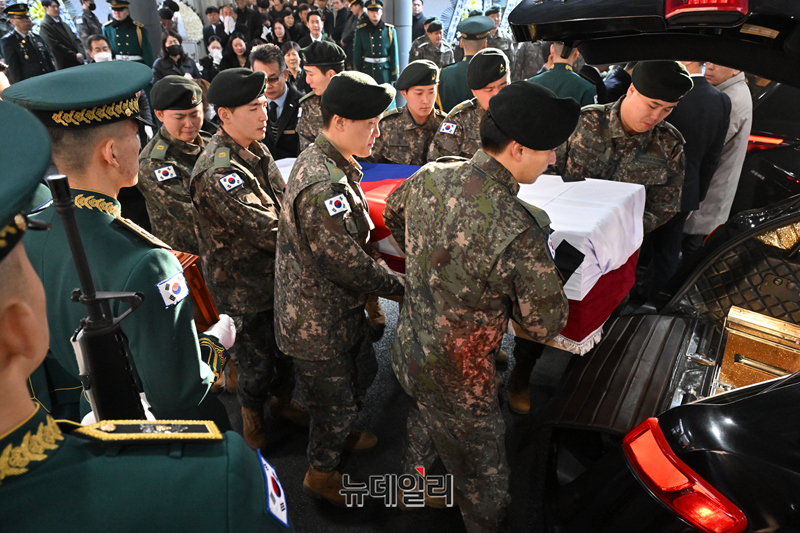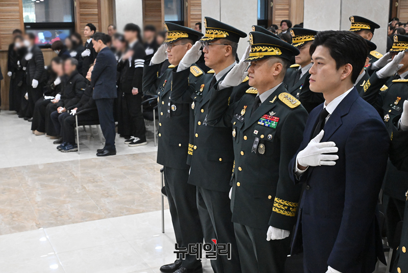 12일 오전 경기 성남시 분당구 국군수도병원 장례식장에서 코브라 헬기 추락으로 순직한 故 장희성‧정상근 준위 영결식이 엄수되고 있다. 2026.2.12 사진공동취재단
