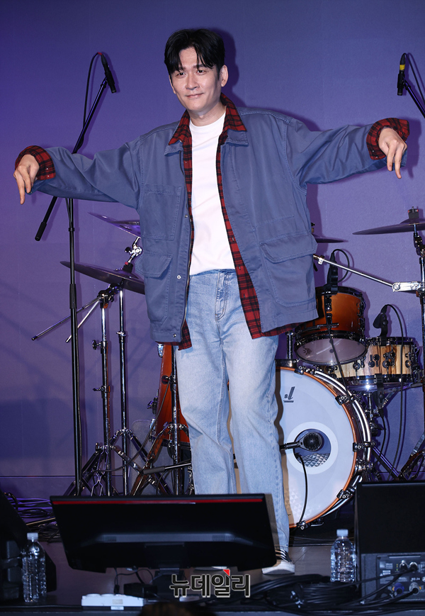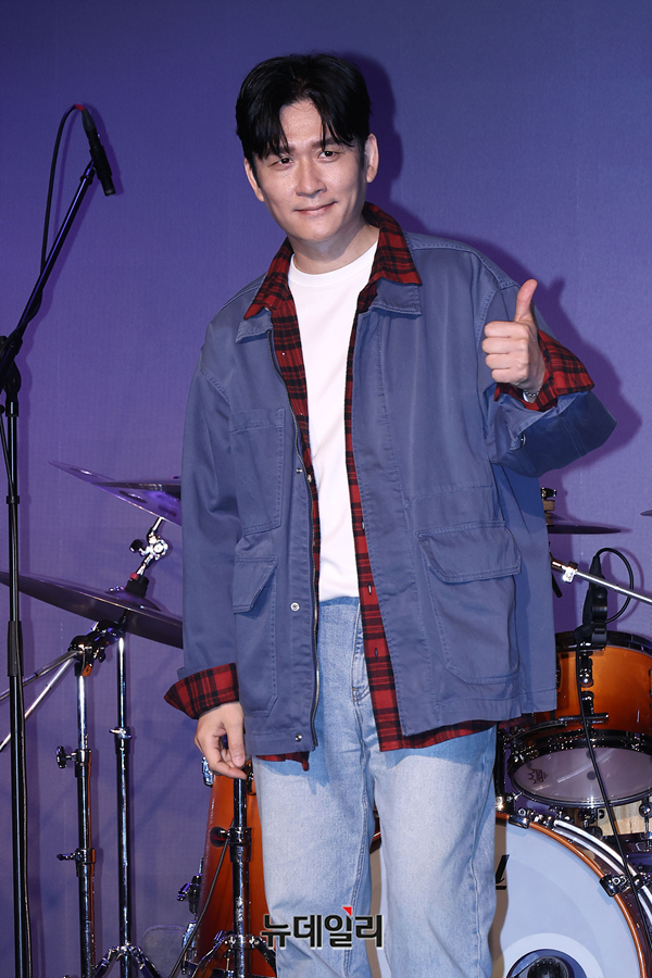 아묻따밴드 기타를 맡은 야다 전인혁이 12일 오후 서울 종로구 대학로 SA홀에서 열린 첫 디지털 싱글 발매기념 쇼케이스에서 포즈를 취하고 있다.KBS 2TV 불후의명곡 신년기획 2026 배우 특집에서 우승을 거머쥐며 화제를 모은 아묻따 밴드는 이날 첫 싱글 '알고 있잖아'를 발매하며 정식으로 데뷔했다.밴드는 홍경민(리더, 베이스) 조영수(키보드) 차태현(객원보컬) 전인혁(기타) 김준현(드럼) 조정민(피아노)으로 구성된 팀이다. 음원은 오후 6시 공개.
