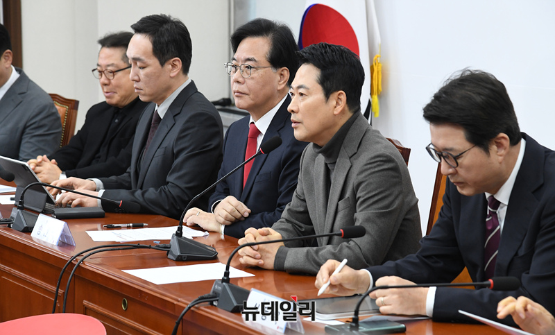 장동혁 국민의힘 대표가 19일 오전 국회에서 열린 최고위원회의에서 모두발언을 하고 있다.