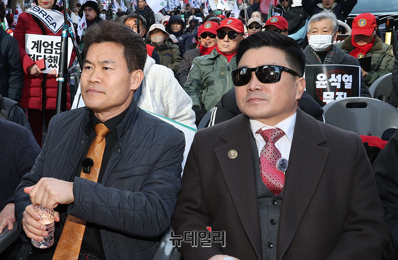 [포토] 尹 1심선고 앞두고 법원인근 집회 참석한 전한길