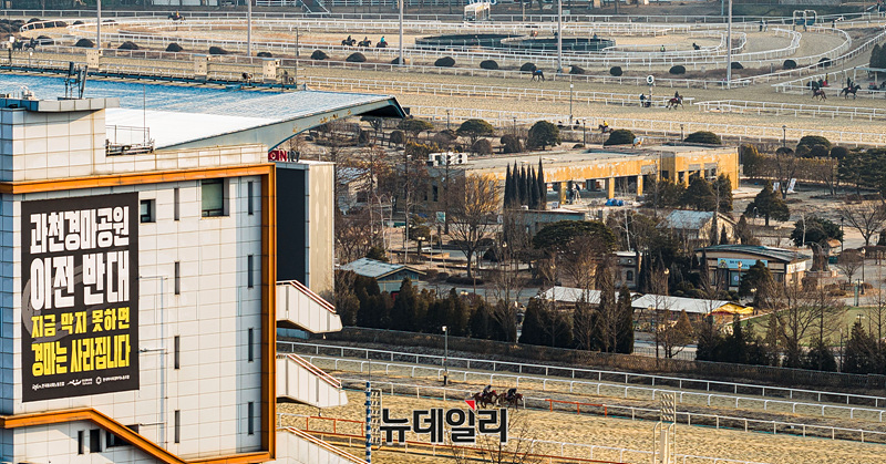 [포토] '이전 반대' 현수막 걸린 경마공원