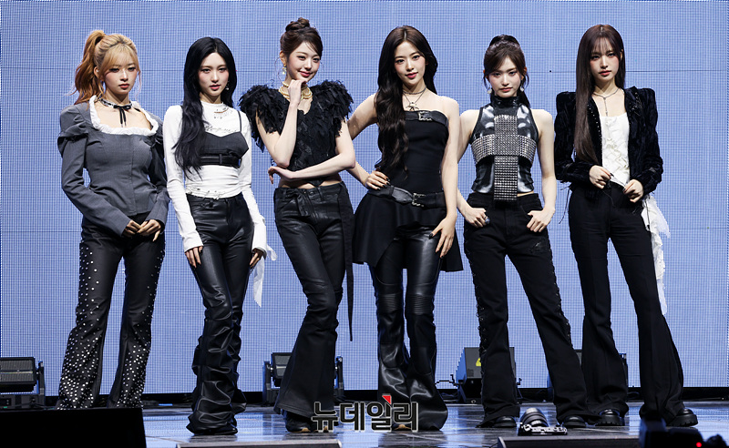그룹 아이브가 23일 오후 서울 광진구 예스24 라이브홀에서 열린 정규 2집 'REVIVE+(리바이브 플러스)' 발매 기념 미디어 쇼케이스에서 포즈를 취하고 있다.이번 앨범은 더블 타이틀곡인 'BLACKHOLE(블랙홀)' 'BANG BANG(뱅뱅)'을 비롯해 '숨바꼭질 (Hush)' '악성코드 (Stuck In Your Head)' 'Fireworks(파이어워크)' 'HOT COFFEE(핫커피)' 장원영의 '8(에잇)' 가을의 'Odd(오드)' 이서의 'Super ICY(슈퍼 아이시)' 리즈의 'Unreal(언리얼)' 레이의 'In Your Heart(인 유어 하트)' 안유진의 'Force(포스)' 등 멤버별 솔로 트랙을 포함해 총 12곡을 담았다.