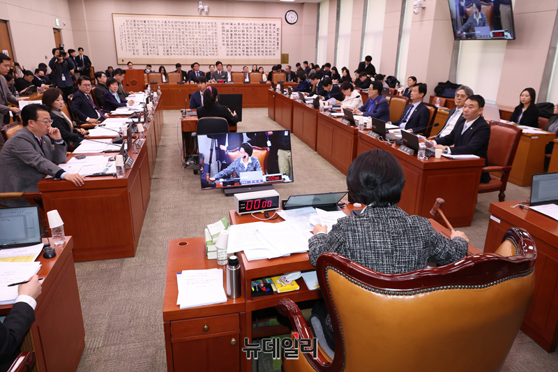 추미애 국회 법사위원장이 23일 국회에서 열린 법제사법위원회 전체회의에서 의사진행을 하고 있다.