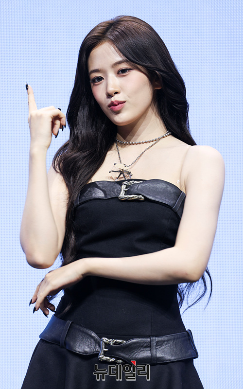 그룹 아이브 안유진이 23일 오후 서울 광진구 예스24 라이브홀에서 열린 정규 2집 'REVIVE+(리바이브 플러스)' 발매 기념 미디어 쇼케이스에서 포즈를 취하고 있다.이번 앨범은 더블 타이틀곡인 'BLACKHOLE(블랙홀)' 'BANG BANG(뱅뱅)'을 비롯해 '숨바꼭질 (Hush)' '악성코드 (Stuck In Your Head)' 'Fireworks(파이어워크)' 'HOT COFFEE(핫커피)' 장원영의 '8(에잇)' 가을의 'Odd(오드)' 이서의 'Super ICY(슈퍼 아이시)' 리즈의 'Unreal(언리얼)' 레이의 'In Your Heart(인 유어 하트)' 안유진의 'Force(포스)' 등 멤버별 솔로 트랙을 포함해 총 12곡을 담았다.