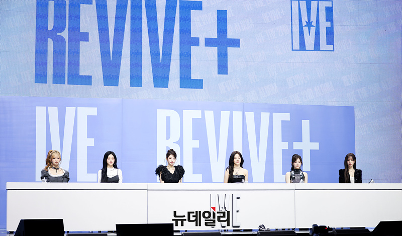 그룹 아이브가 23일 오후 서울 광진구 예스24 라이브홀에서 열린 정규 2집 'REVIVE+(리바이브 플러스)' 발매 기념 미디어 쇼케이스에서 소감을 밝히고 있다.이번 앨범은 더블 타이틀곡인 'BLACKHOLE(블랙홀)' 'BANG BANG(뱅뱅)'을 비롯해 '숨바꼭질 (Hush)' '악성코드 (Stuck In Your Head)' 'Fireworks(파이어워크)' 'HOT COFFEE(핫커피)' 장원영의 '8(에잇)' 가을의 'Odd(오드)' 이서의 'Super ICY(슈퍼 아이시)' 리즈의 'Unreal(언리얼)' 레이의 'In Your Heart(인 유어 하트)' 안유진의 'Force(포스)' 등 멤버별 솔로 트랙을 포함해 총 12곡을 담았다.