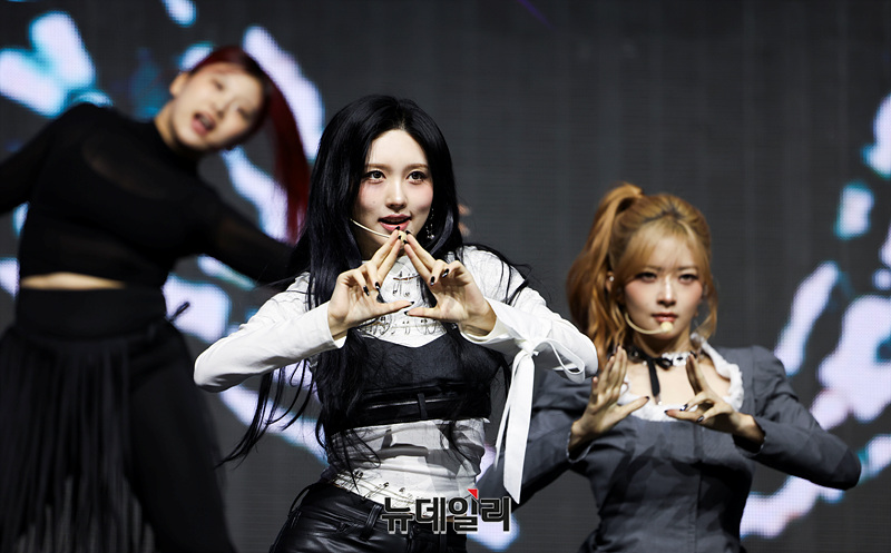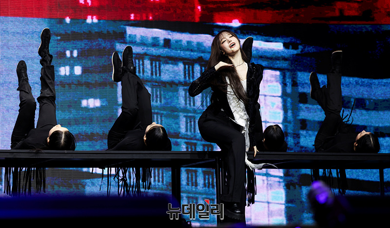 그룹 아이브가 23일 오후 서울 광진구 예스24 라이브홀에서 열린 정규 2집 'REVIVE+(리바이브 플러스)' 발매 기념 미디어 쇼케이스에서 무대를 선보이고 있다.이번 앨범은 더블 타이틀곡인 'BLACKHOLE(블랙홀)' 'BANG BANG(뱅뱅)'을 비롯해 '숨바꼭질 (Hush)' '악성코드 (Stuck In Your Head)' 'Fireworks(파이어워크)' 'HOT COFFEE(핫커피)' 장원영의 '8(에잇)' 가을의 'Odd(오드)' 이서의 'Super ICY(슈퍼 아이시)' 리즈의 'Unreal(언리얼)' 레이의 'In Your Heart(인 유어 하트)' 안유진의 'Force(포스)' 등 멤버별 솔로 트랙을 포함해 총 12곡을 담았다.