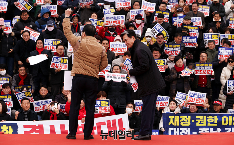 [포토] 규탄대회 참석한 김태흠 충남도지사와 이장우 대전시장