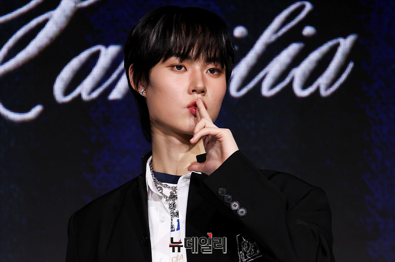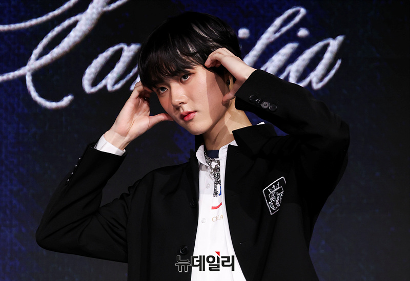 그룹 '초코(ChoCo)' 태조가 24일 오후 서울 마포구 쇼킹케이팝센터에서 열린 첫 패밀리 앨범 '초코 라 파밀리아(ChoCo La Familia)' 발매 기념 쇼케이스에서 포즈를 취하고 있다.