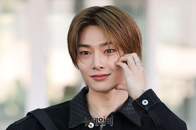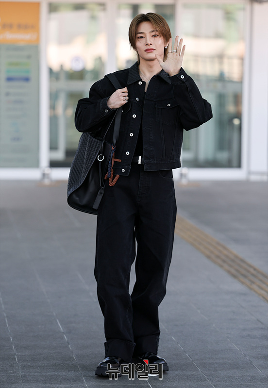 스트레이키즈 아이엔이 25일 오전 인천국제공항 제2여객터미널을 통해 출국하며 포즈를 취하고 있다. (인천=서성진 기자)