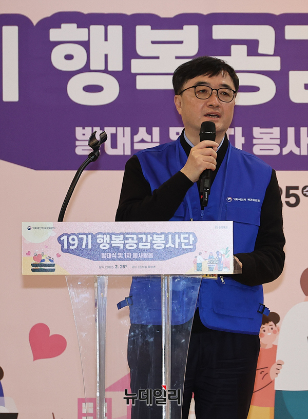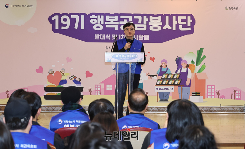 임기근(기획예산처 2차관) 복권위원회 위원장이 25일 오전 서울 종로구 돈의동 초동교회에서 열린 행복공감봉사단 19기 발대식에서 기념사를 하고 있다.