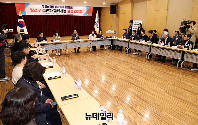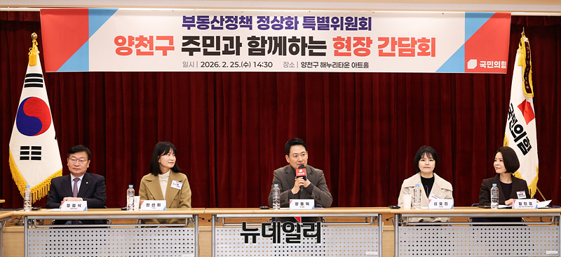 장동혁 국민의힘 대표가 25일 오후 서울 양천구 해누리타운에서 열린 국민의힘 부동산정책 정상화 특별위원회 서울 부동산 현장 간담회에서 모두발언을 하고 있다.