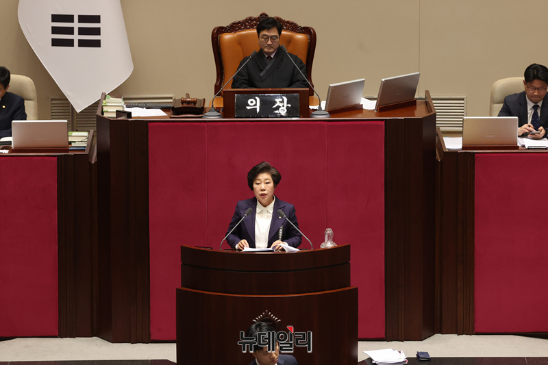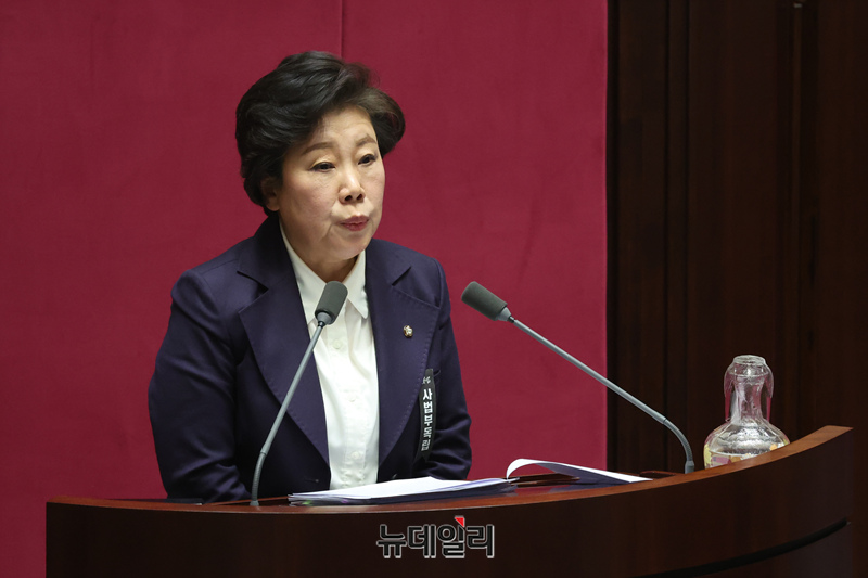 조배숙 국민의힘 의원이 25일 국회에서 열린 본회의에서 형법 일부개정법률안(대안)에 대한 무제한 토론(필리버스터)을 하고 있다.