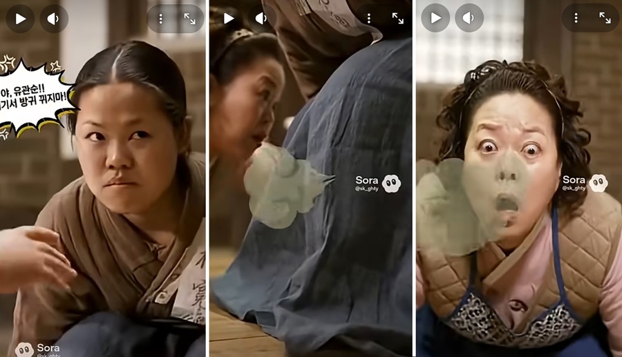 '유관순의 똥방귀'라는 제목이 붙은 영상에선 AI로 구현된 유관순 열사가 한 식당에 쪼그려 앉아 있는 모습이 나온다.