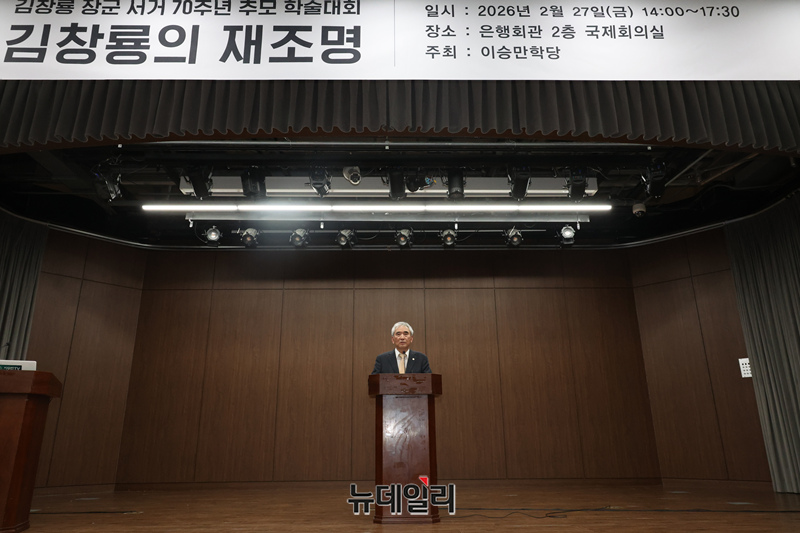 김창룡 장군 서거 70주년 추모 학술대회가 27일 오후 서울 종로구 은행회관 국제회의실에서 열린 가운데 이영훈 이승만학당 교장이 기조강연을 하고 있다.이날 행사에는 이영훈 이승만학당 교장, 주익종 이승만학당 교사, 류석춘 전 연세대 교수가 주요 순서의 사회와 발표를 맡았다. 외빈으로는 허화평 전 국회의원이 축사를 전했으며, 유족 대표로 김창룡 장군의 삼녀인 김미영 씨가 참석했다. 또한 주제 발표와 토론을 위해 정안기 낙성대경제연구소 연구위원, 정주진 연세대 국가관리연구원 연구원, 김광동 전 과거사위원회 위원장, 그리고 유광호 자유민주학회장이 자리를 함께 했다.이번 행사는 현대사 속 김 장군의 부정적 프레임을 비판적으로 고찰하고, 그의 공적을 재구성하기 위해 마련됐다.
