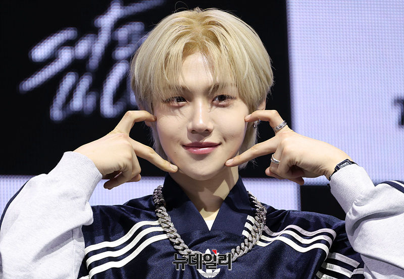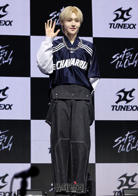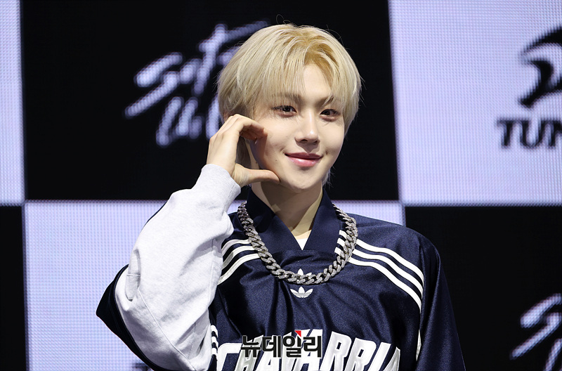 보이그룹 튜넥스(TUNEXX) 시환이 3일 오후 서울 광진구 예스24 라이브홀에서 열린 첫 번째 미니앨범 '셋 바이 어스 온리'(SET BY US ONLY)' 발매 기념 미디어 쇼케이스에서 포즈를 취하고 있다.